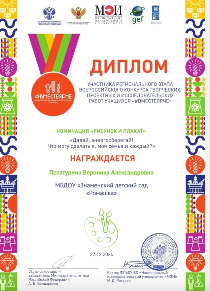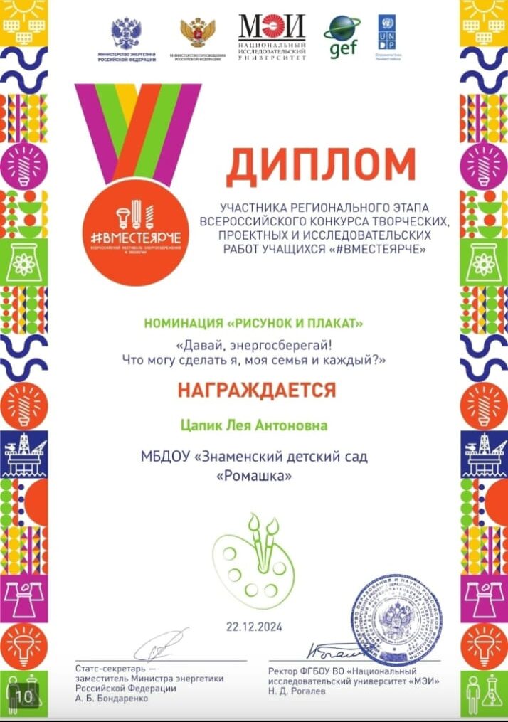 | Региональный этап Всероссийского конкурса творческих, проектных и исследовательских работ учащихся «#Вместе Ярче» | Селиверстова Алиса | Диплом участника |