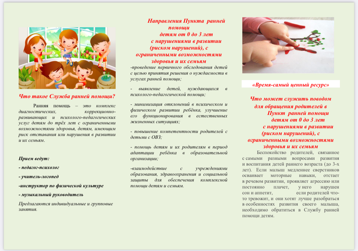 Пункт ранней помощи для родителей (законных представителей) и детей от 0 до 3 лет с нарушениями в развитии (риском нарушений), с ограниченными возможностями здоровья